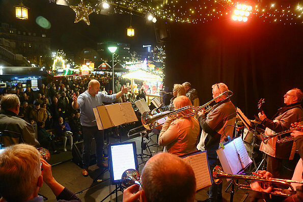 Worte zum Advent richtet Pfarrer Friedel Goetz von der ChristusFriedenGemeinde an die Gäste. Oberbürgermeister Christian Specht eröffnet den Weihnachtsmarkt offiziell mit einer Ansprache. Das Blasorchester Blau-Weiss Waldhof gestaltet die Eröffnung mit seinem abwechslungsreichen Repertoire zwischen klassischen und swingenden Weihnachtsliedern und beliebten Pop-Melodien.
